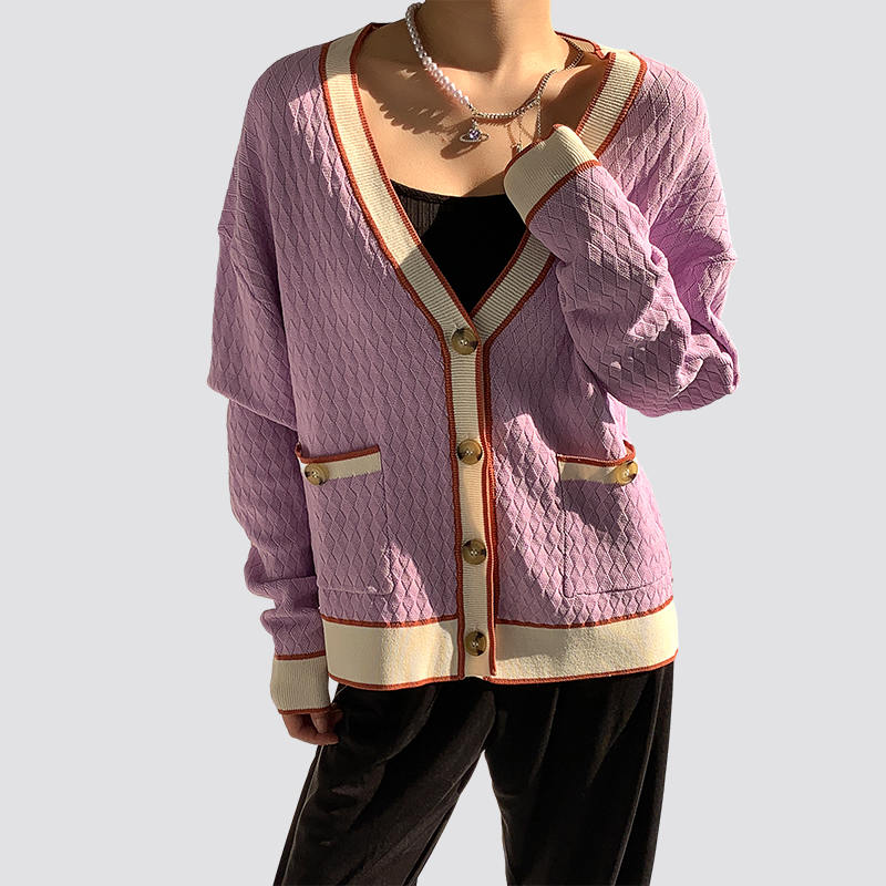 บริษัทผลิตเสื้อสเวตเตอร์ถักสำหรับเด็ก ผู้ชาย และผู้หญิงเป็นหลัก เสื้อคาร์ดิแกนถักสีม่วง company in China.