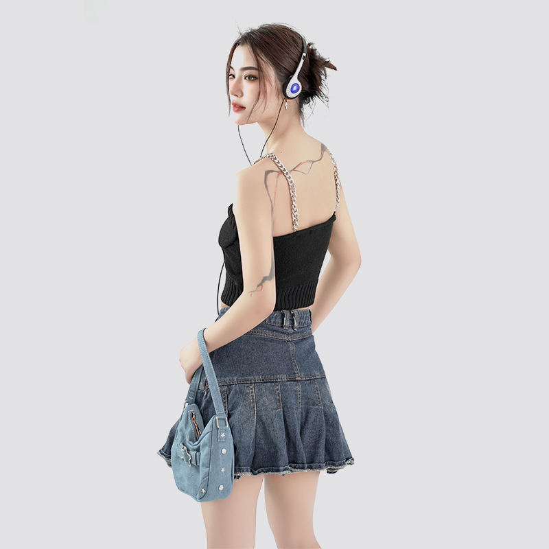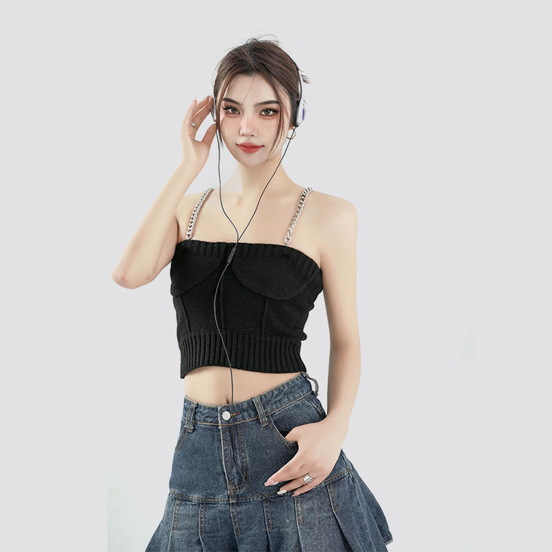 บริษัทผลิตเสื้อสเวตเตอร์ถักสำหรับเด็ก ผู้ชาย และผู้หญิงเป็นหลัก เสื้อกล้ามสายโซ่โลหะแฟชั่นเซ็กซี่สีดำ company in China.