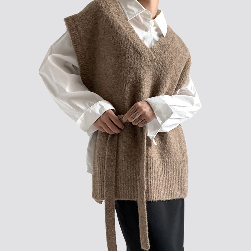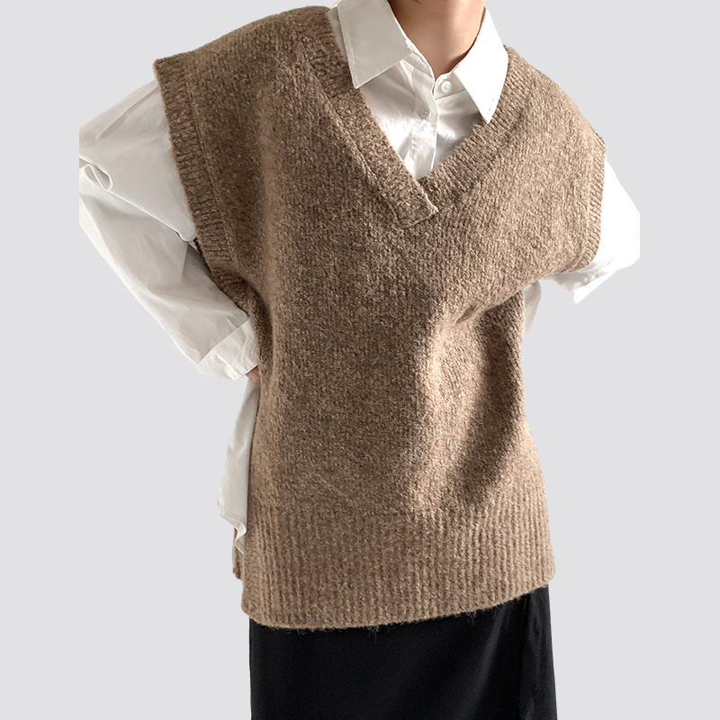 บริษัทผลิตเสื้อสเวตเตอร์ถักสำหรับเด็ก ผู้ชาย และผู้หญิงเป็นหลัก ผู้หญิงคอวีสีกากีเสื้อสวมหัวหลวมถักเสื้อกันหนาวเสื้อกล้าม company in China.
